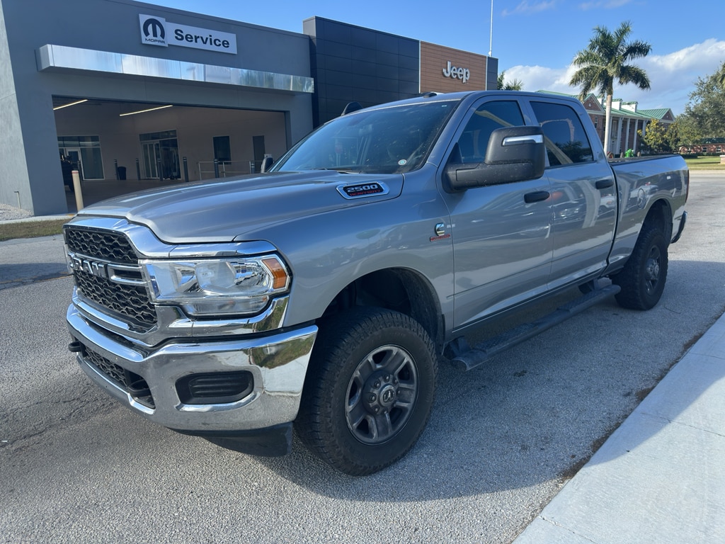 It is equipped with the latest generation of XM/Sirius Radio. Apple CarPlay: Seamless smartphone integration for this Ram 2500 - stay connected and entertained on the go! This model has satellite radio capabilities. This vehicle has a clean AutoCheck report. This unit's AutoCheck: 1 owner, assurance of single-owner history for peace of mind. The Ram 2500 features a hands-free Bluetooth phone system. See what's behind you with the back up camera on this 2023 Ram 2500 . It comes equipped with Android Auto for seamless smartphone integration on the road. The vehicle has a 6 Cyl, 6.7L high output engine. This 3/4 ton pickup has four wheel drive capabilities. Greater towing safety becomes standard with the installed trailer brake. Quickly unlock this model with keyless entry. This model gleams with an elegant silver clear coated finish. This vehicle has an automatic transmission. The Electronic Stability Control will keep you on your intended path.
